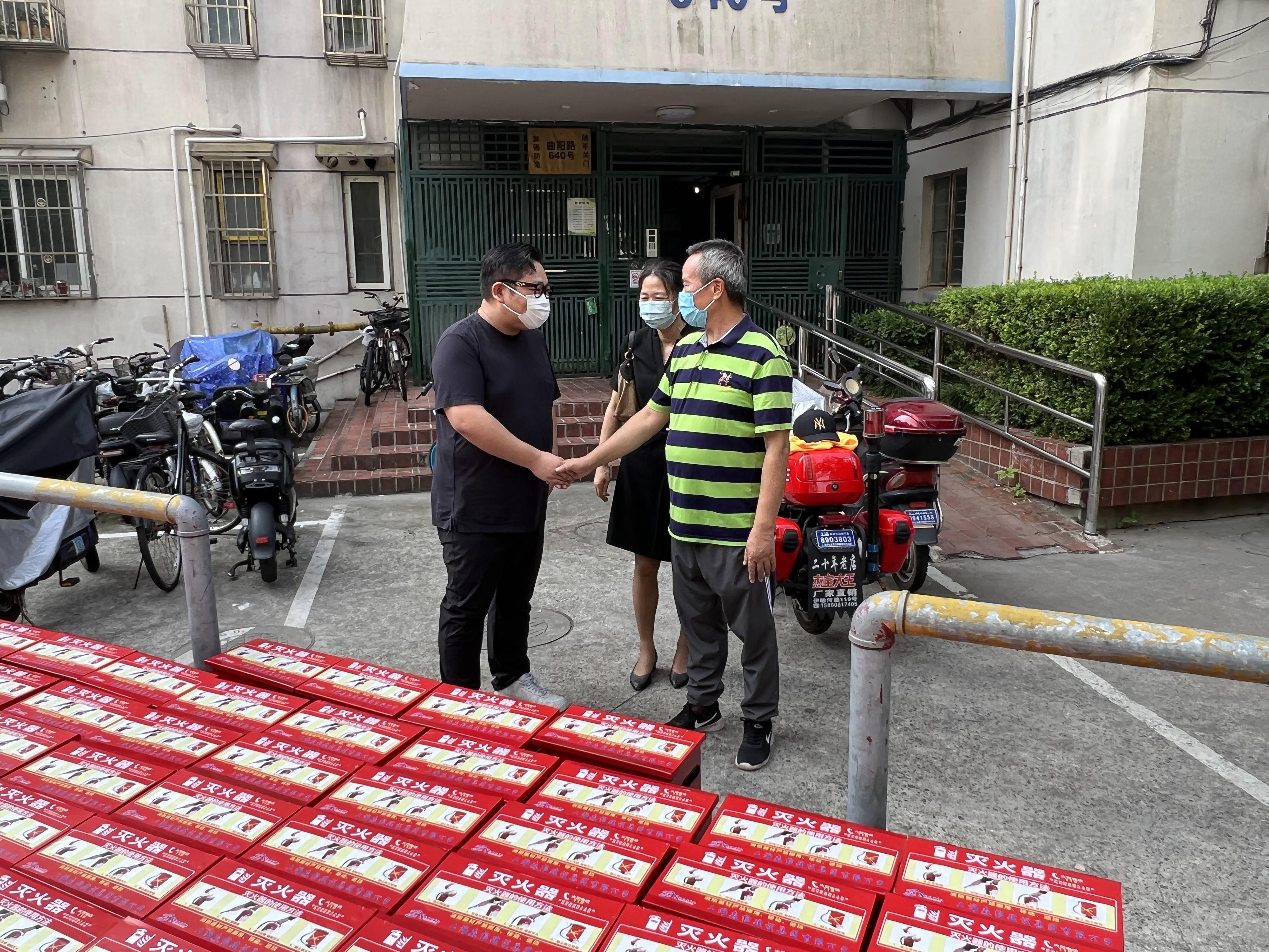7月21日上午,虹口區(qū)人大代表、集團總裁王銘豪向赤三居委捐贈了168具滅火器及配套器材箱,曲陽路街道黨工委副書記陳曉峰出席捐贈活動。