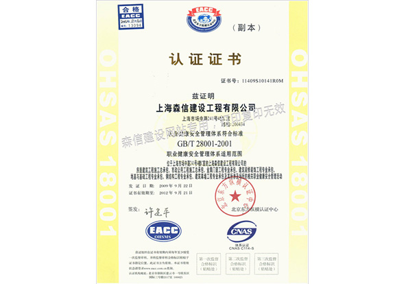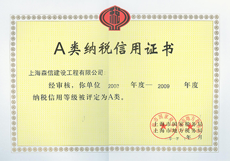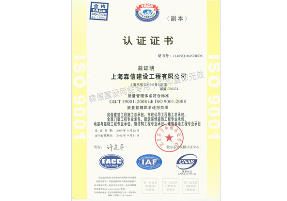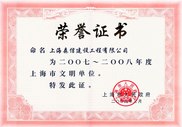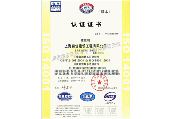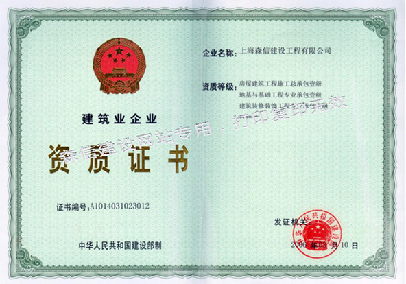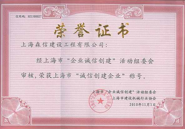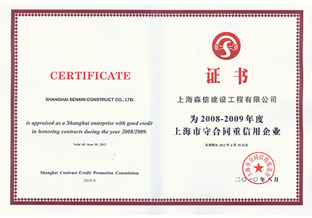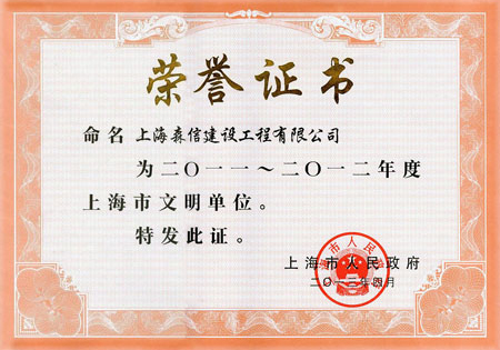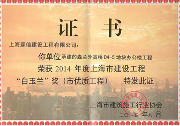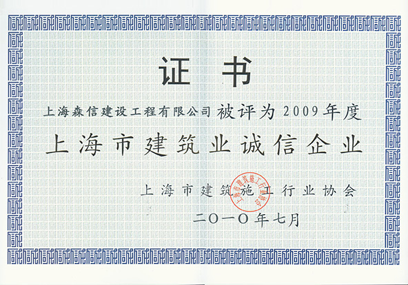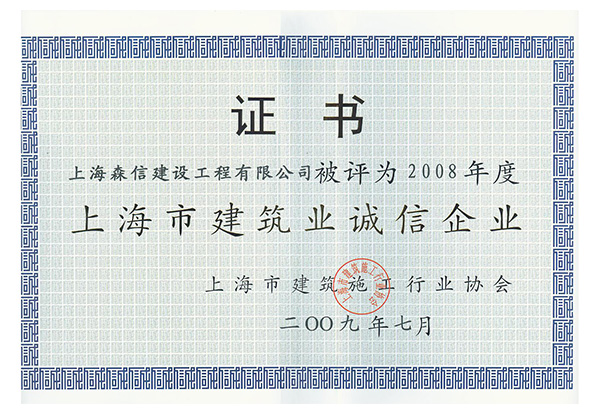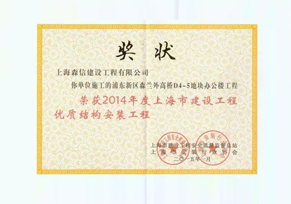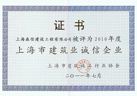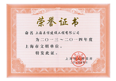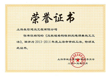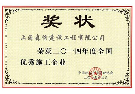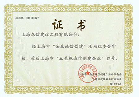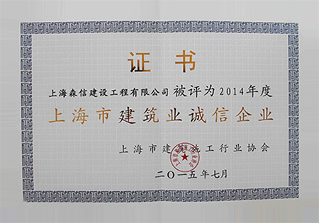 2015年8月榮獲“2014年度“上海市建筑業(yè)誠信企業(yè)”