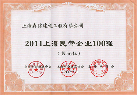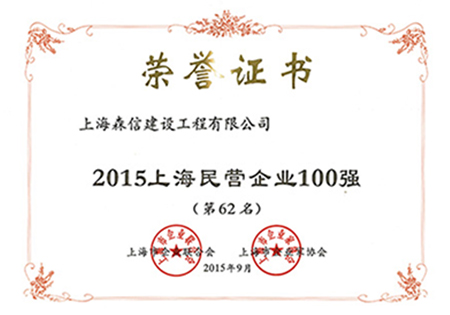 2015年9月榮獲“2015年度上海民營企業(yè)100強”
