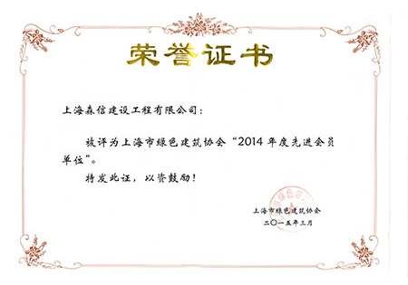 2015年3月獲評上海市綠色建筑協(xié)會“2014年度先進(jìn)會員單位”