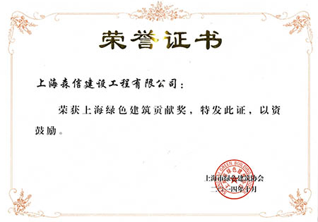 2014年10月榮獲上海綠色建筑貢獻(xiàn)獎
