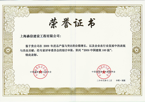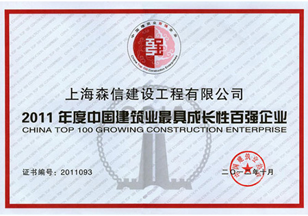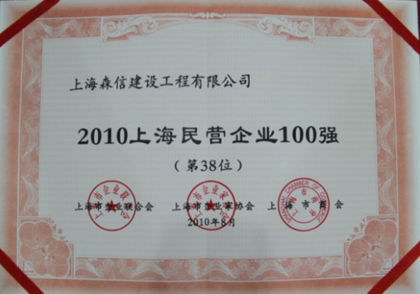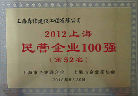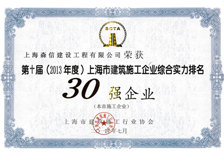2015年8月榮獲“2014年度上海市建筑施工企業(yè)綜合實力排名30強企業(yè)”