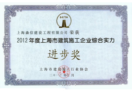 2013年7月榮獲2012年度綜合實力進(jìn)步獎