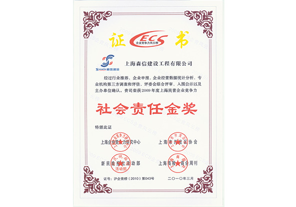 2015年3月榮獲“上海市建筑施工行業(yè)履行社會責(zé)任先鋒企業(yè)”