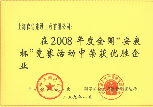 2009年1年榮獲2008年度全國“安康杯”優(yōu)勝企業(yè)