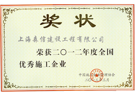 2012年3月榮獲全國優(yōu)秀施工企業(yè)