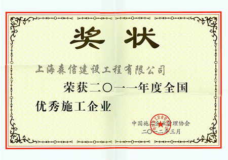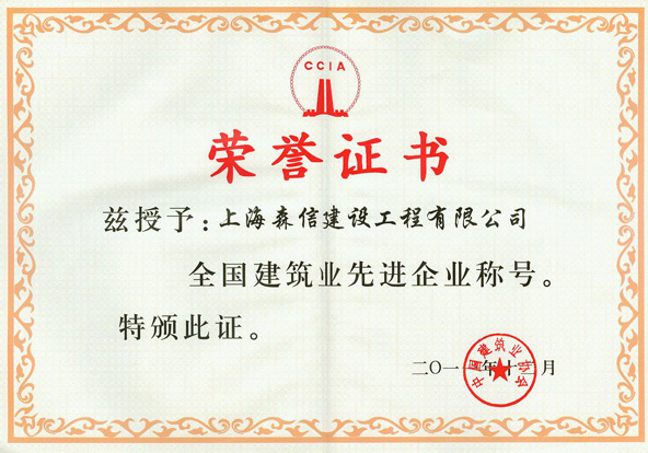 2011年12月榮獲全國建筑業(yè)先進(jìn)企業(yè)