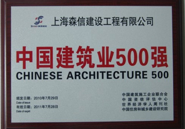 2010年7月榮獲中國建筑業(yè)500強榮譽稱號