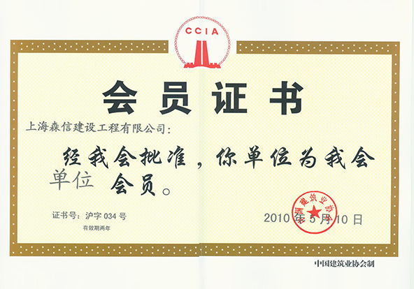 2010年5月成為中國建筑業(yè)協(xié)會會員