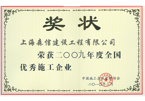 2010年3月榮獲全國優(yōu)秀施工企業(yè)