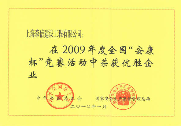 2010年1月榮獲2009年度全國“安康杯"優(yōu)勝企業(yè)