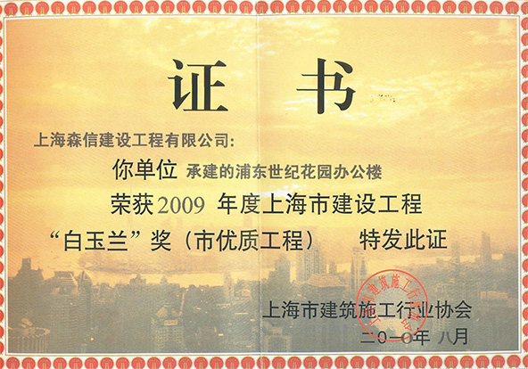 2010年8月東上海世紀(jì)花園辦公樓榮獲2009年度上海市“白玉蘭”獎