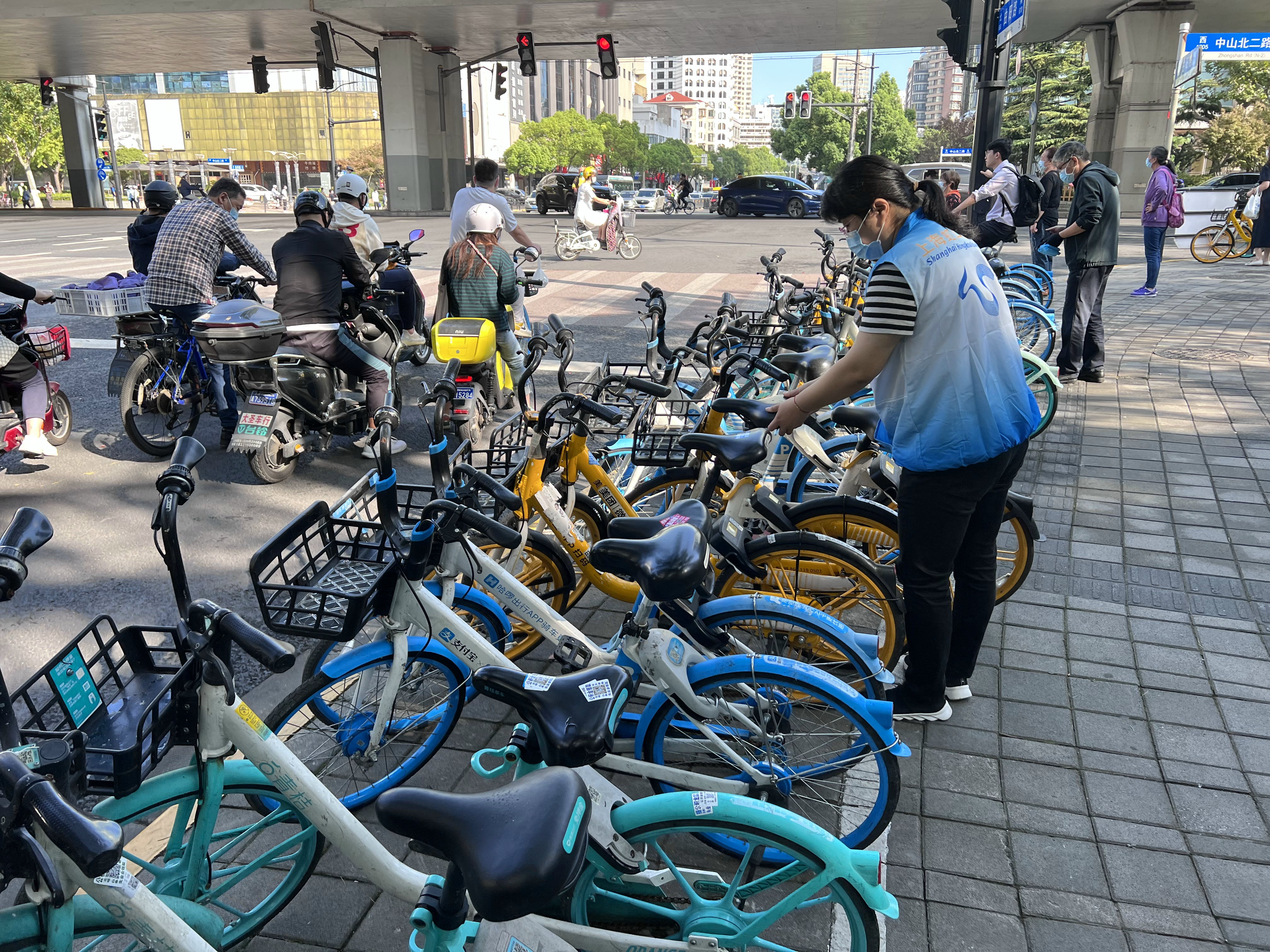 為進一步鞏固創(chuàng)建全國文明城區(qū)行動成果,改善共享單車停放不規(guī)范的現(xiàn)象,營造整潔優(yōu)美的社區(qū)環(huán)境,有效地規(guī)范共享單車停放,引導居民自覺遵守交通法規(guī),志愿者們在曲陽路沿線將隨意擺放及不在停放點的共享單車搬移至停放點擺放整齊,切實維護好共享單車的停放秩序。同時,志愿者們在重要路口積極宣傳文明騎行、有序停放的重要意義,并呼吁過往行人自覺做起文明監(jiān)督員,監(jiān)督身邊的不文明行為。