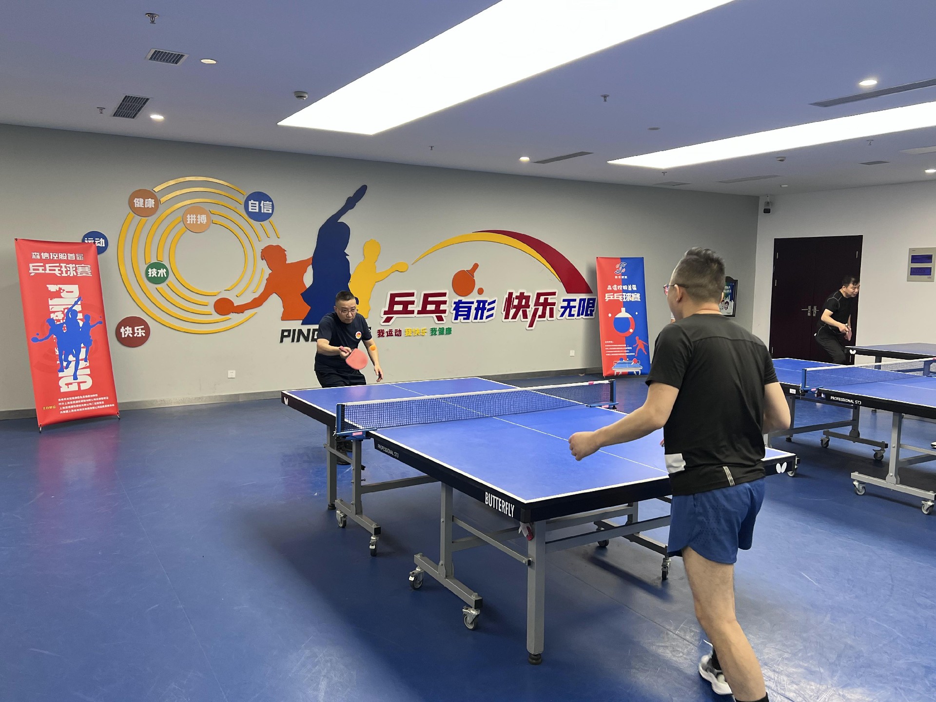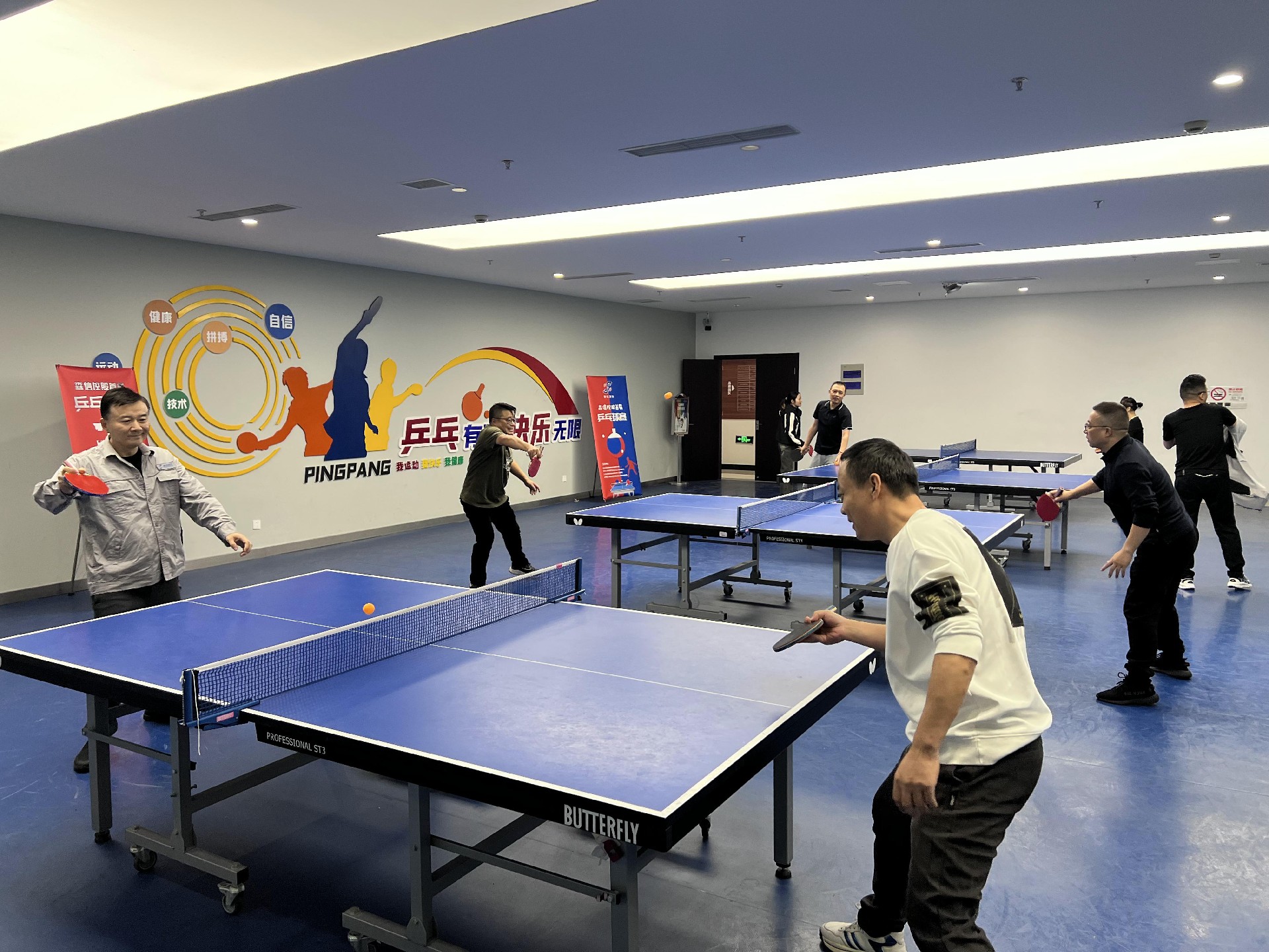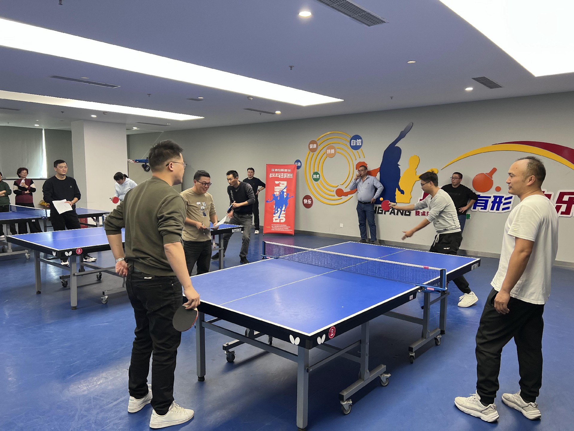 來(lái)自集團(tuán)各部門/項(xiàng)目部的30多位乒乓球愛好者參與比賽;比賽采用11分制,單項(xiàng)每場(chǎng)比賽為三局兩勝制。
