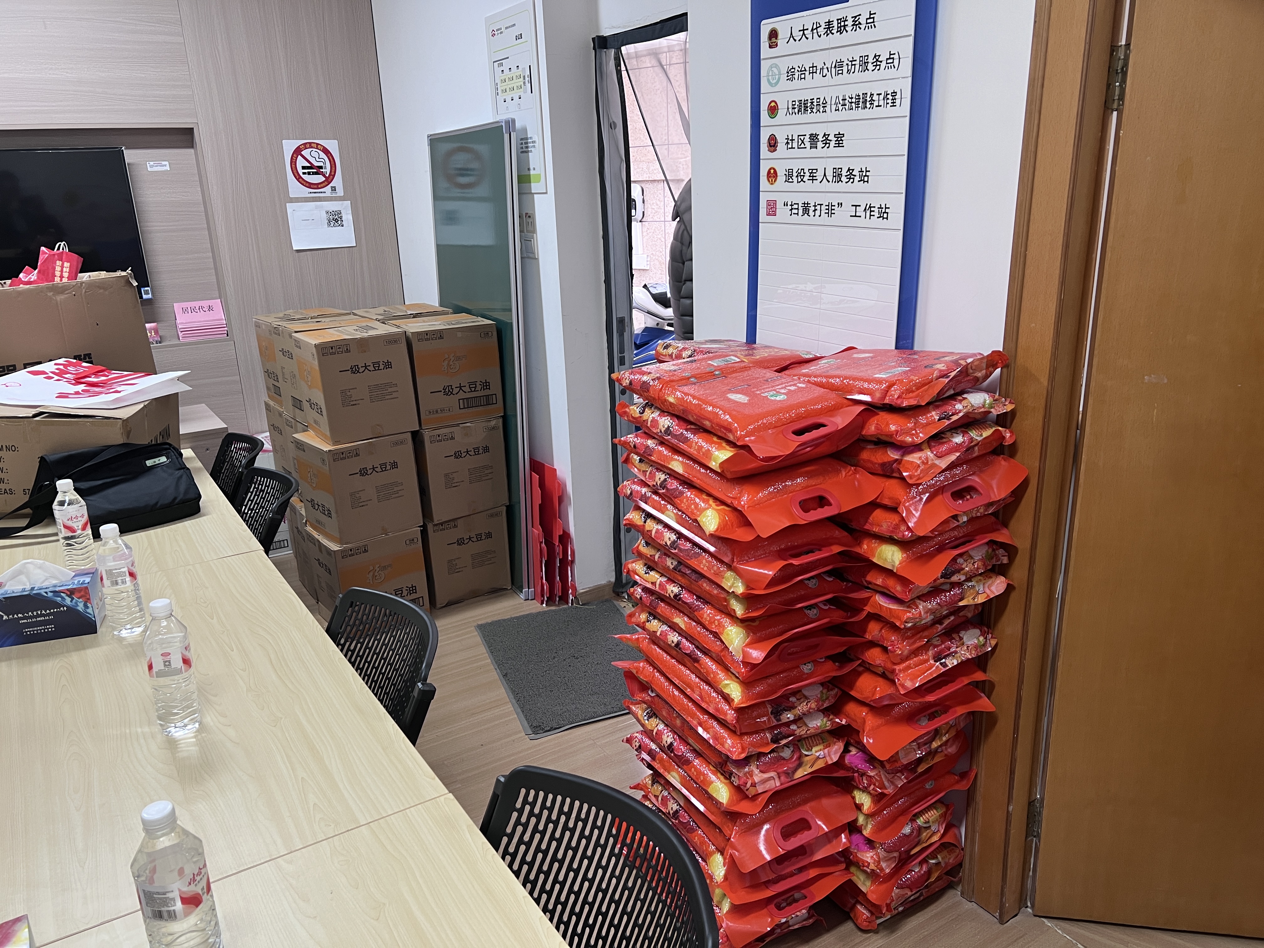 在慰問(wèn)現(xiàn)場(chǎng),王銘豪總裁與社區(qū)工作人員親切交流,詳細(xì)了解了困境家庭的生活狀況與實(shí)際需求,并代表集團(tuán)捐贈(zèng)了大米、食用油等過(guò)節(jié)物資,助力他們度過(guò)一個(gè)溫暖祥和的佳節(jié)。
